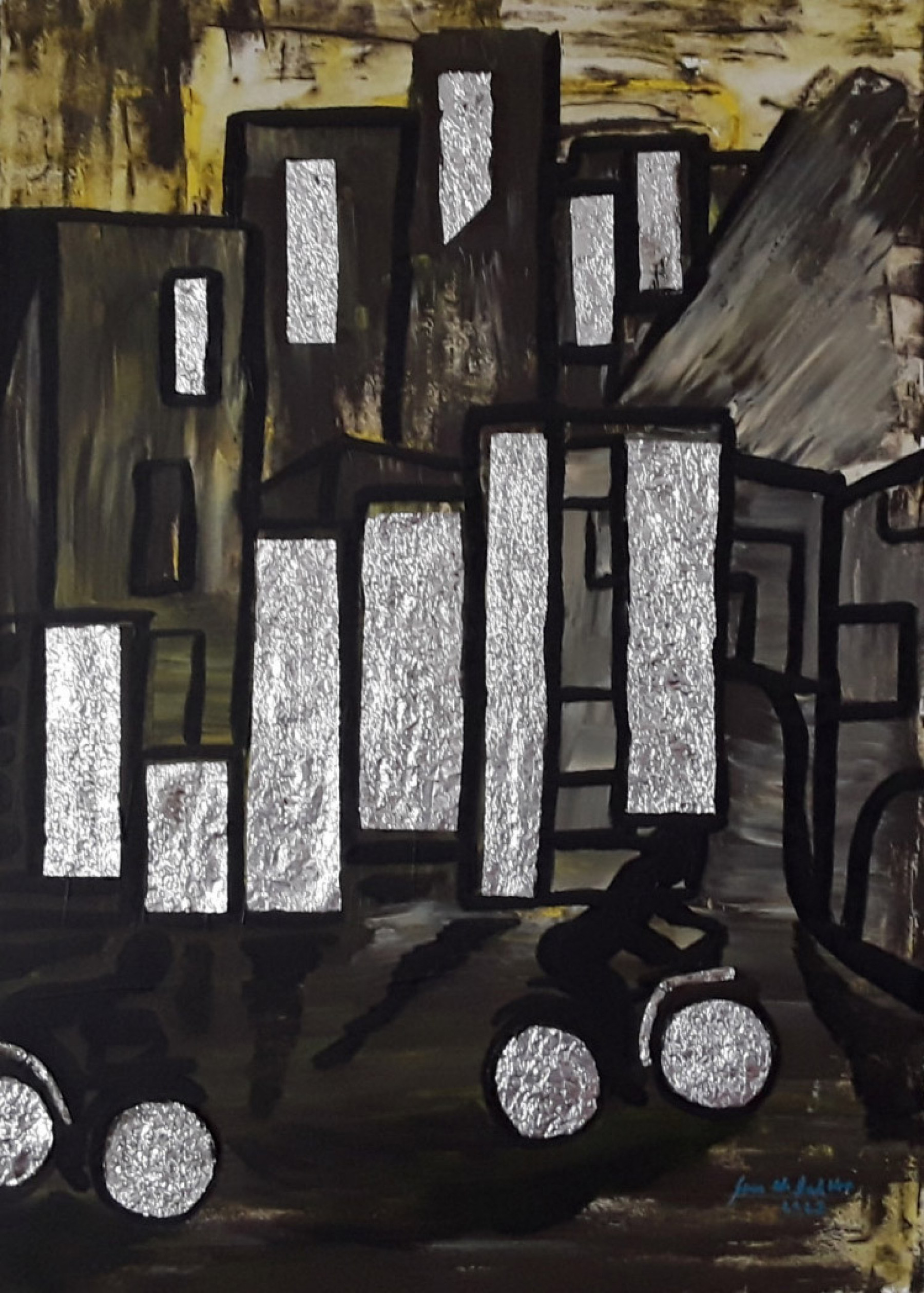 Beschreibung vom Autor:Mixtechnik, Acryl auf Canvas mit Alu. Original, signiert. Es ist das Ergebnis mehrerer experimentell gefertigter Werke bei welchem ich unterschiedliche Materialien und Techniken miteinander zu einem Ganzen komponiere.