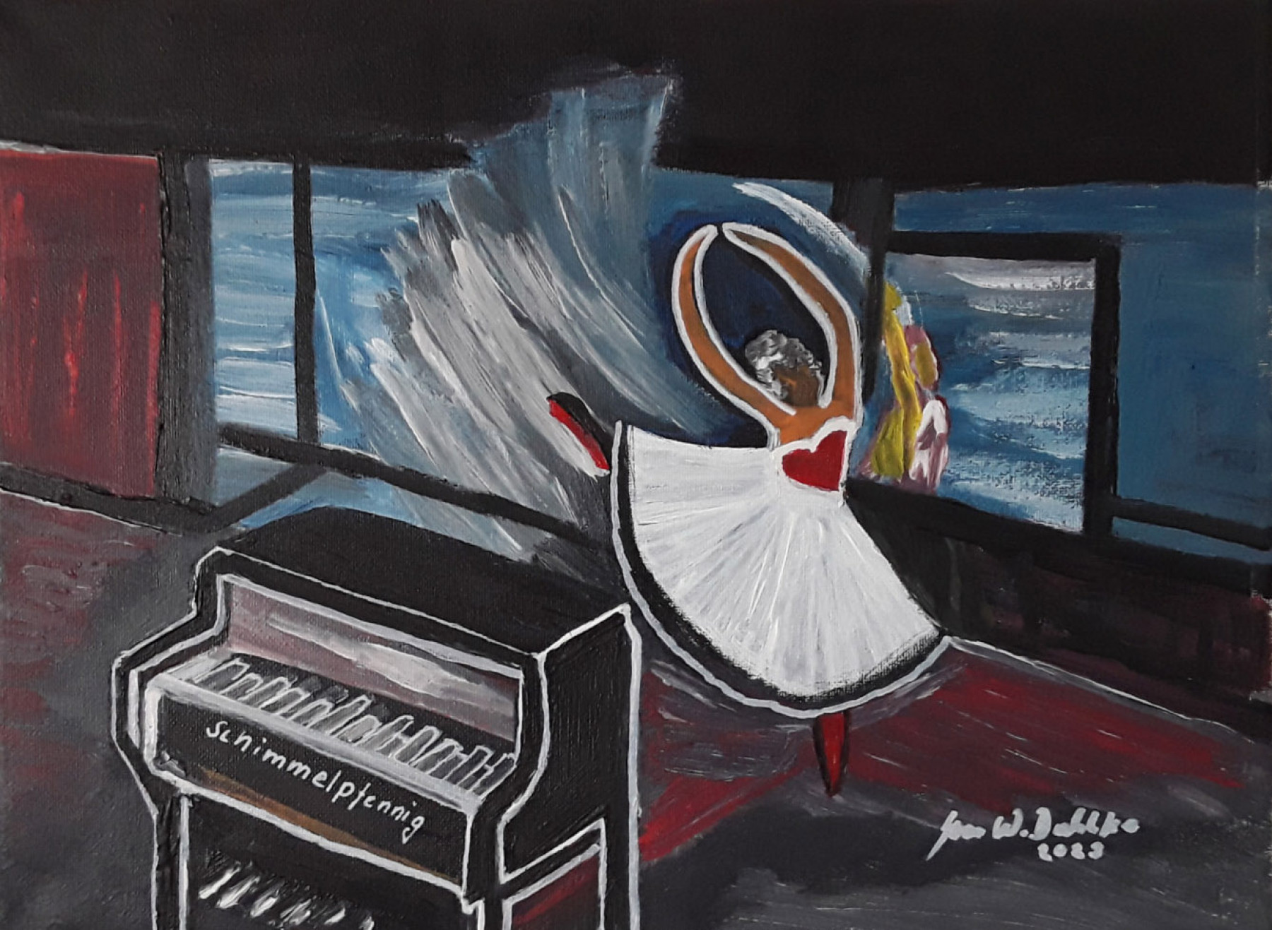 Beschreibung vom Autor:Acryl auf Canvas Musik und Tanz ist wie die Malerei. Es dient zur Freude des Hörers und Betrachters. Es vermittelt Entschleunigung und vergessen des Alltäglichen. Eines der wichtigen Kulturgüter welche man bewahren muss