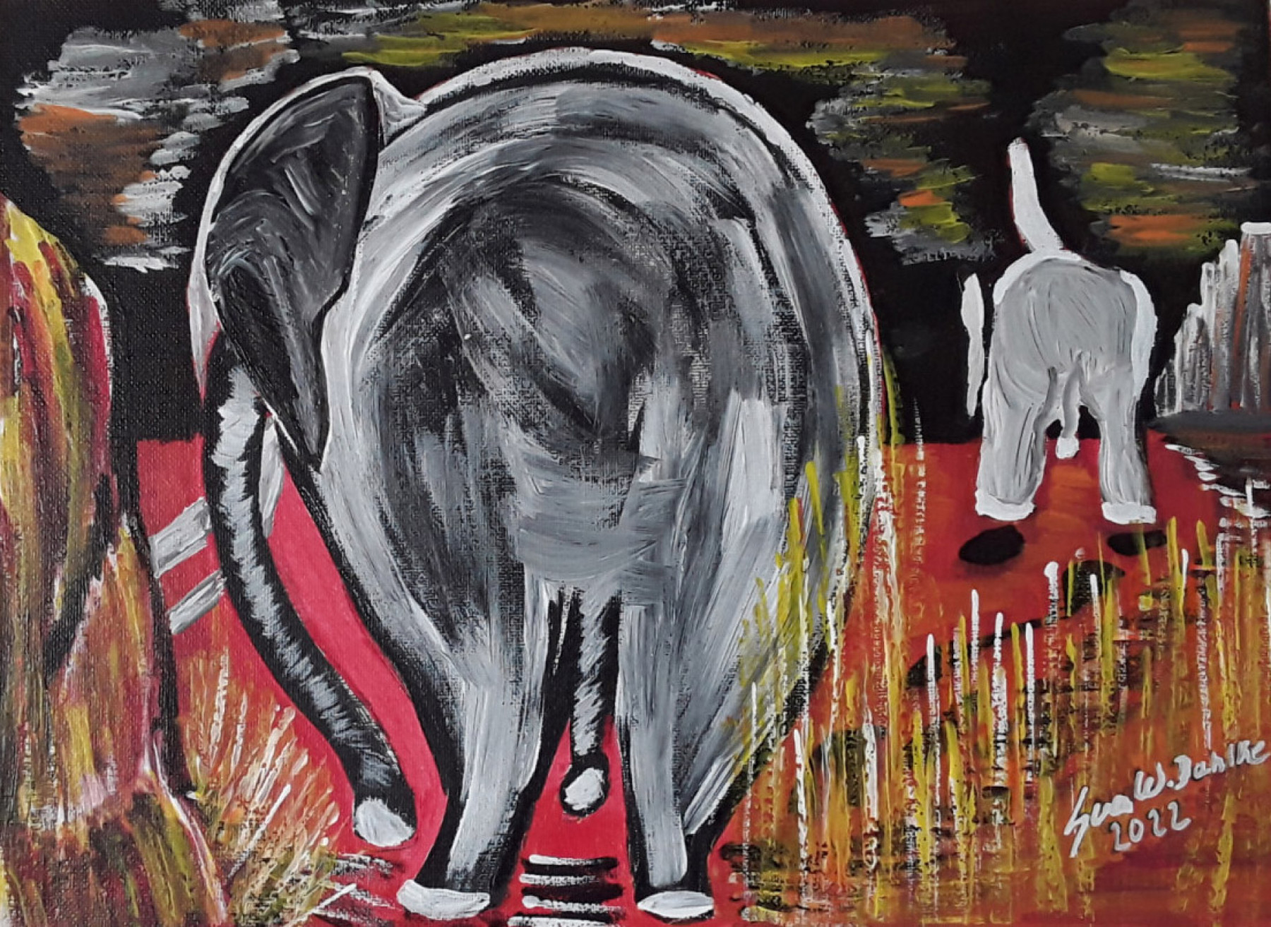 Der Lebebsraum des Dickhäuters ist so bedroht wie alle Formen von Leben durch den unbedachten Eingriff des Menschen inclusive dem Menschen selbst. Meditativ inspiriert durch die Tatsache der Umweltveränderungen.