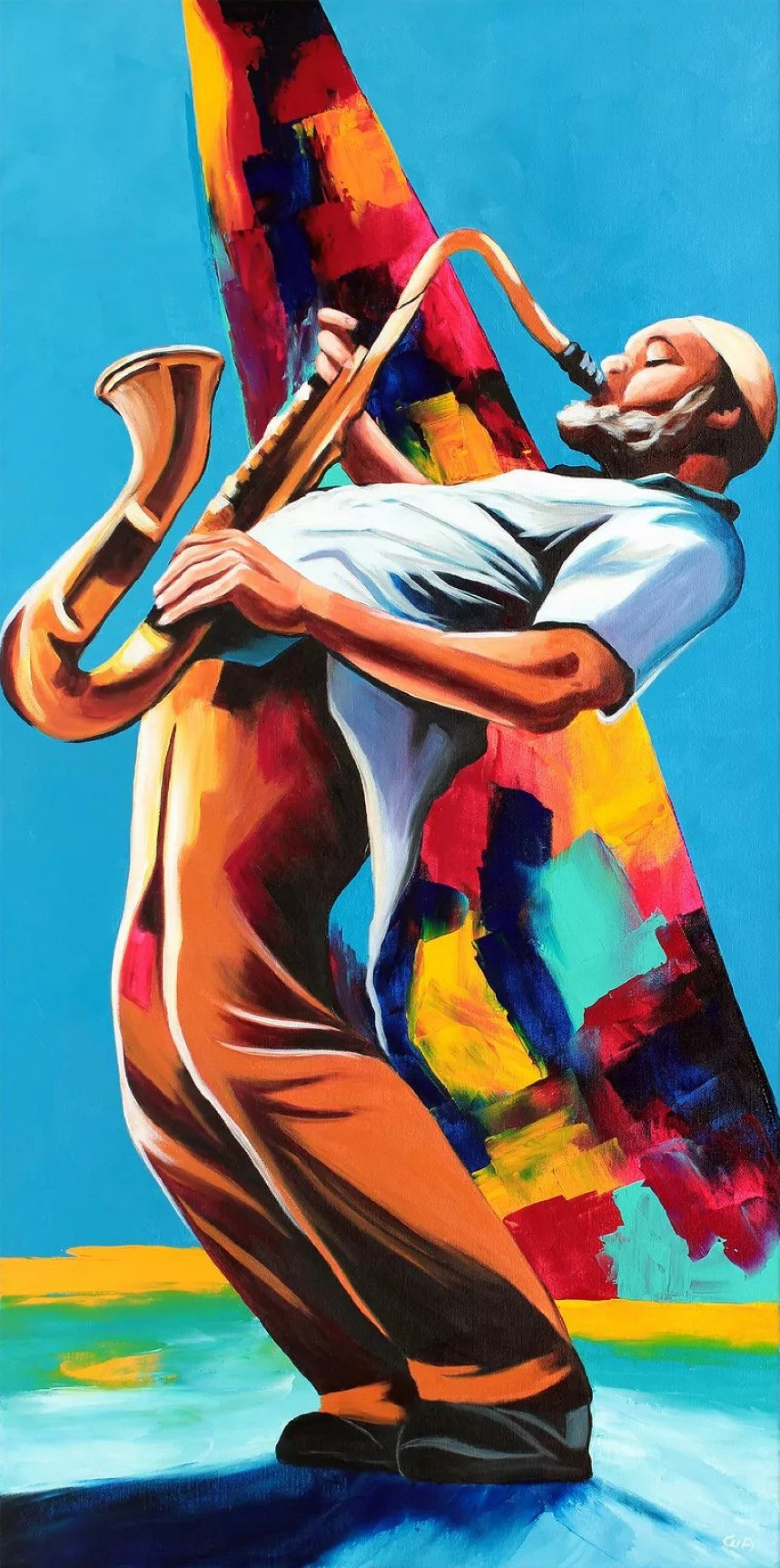 Es wurden hochwertige und lichtbeständige Acrylfarben auf mehrfach weiß grundierter Leinwand verwendet. Das Gemälde ist fachgerecht auf einem Holzkeilrahmen aufgespannt. Die Keilrahmen wurden fachmännisch getrocknet und sind verzugsfrei. Die Leinwand wird über das "Holzgerüst" gespannt und verdeckt dieses komplett. Die farblich angepassten Seitenflächen sind klammerfrei und bemalt (rückseitig geklammert).